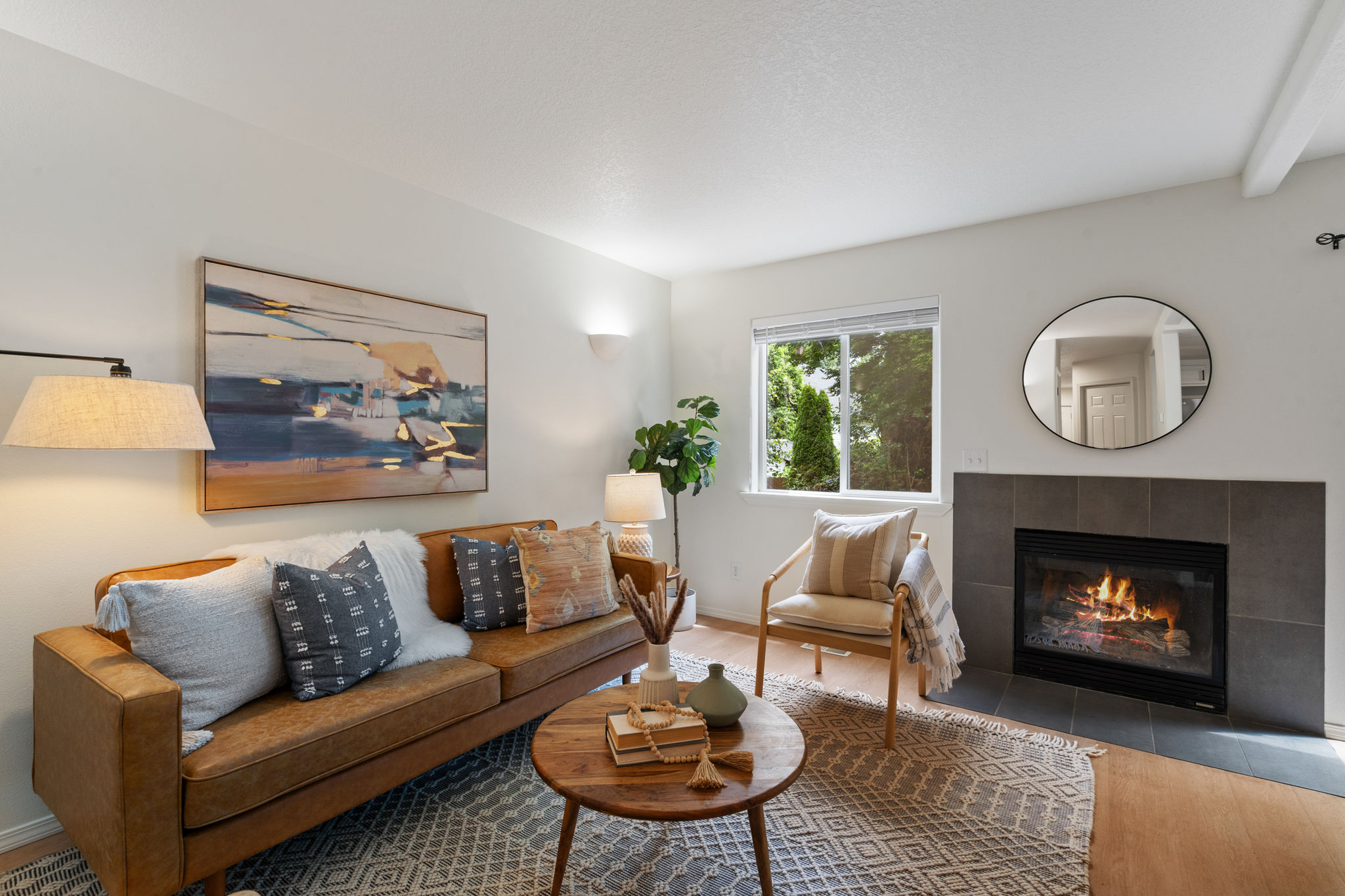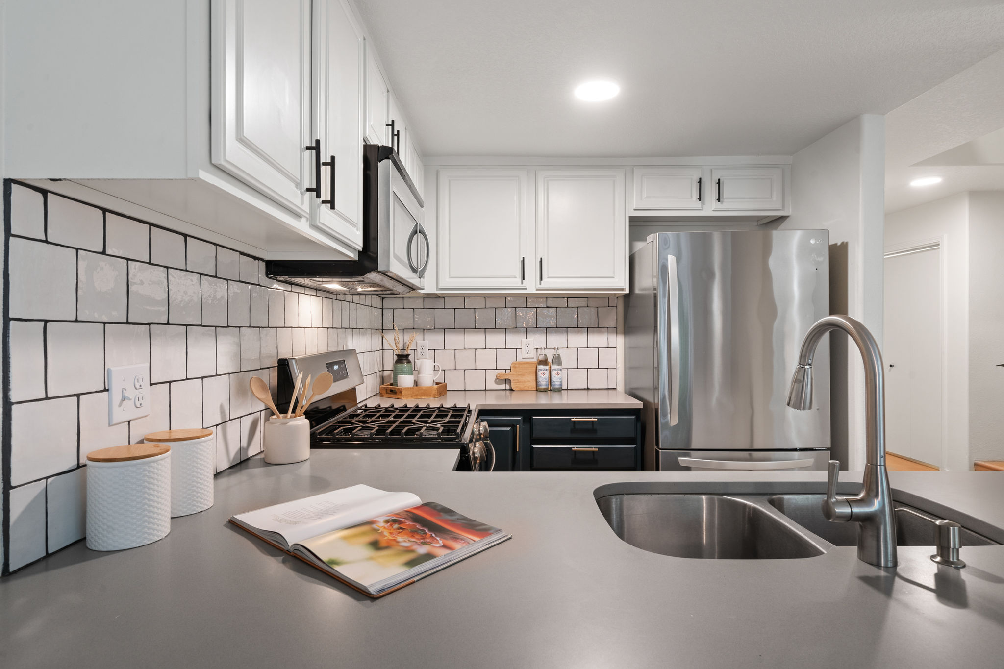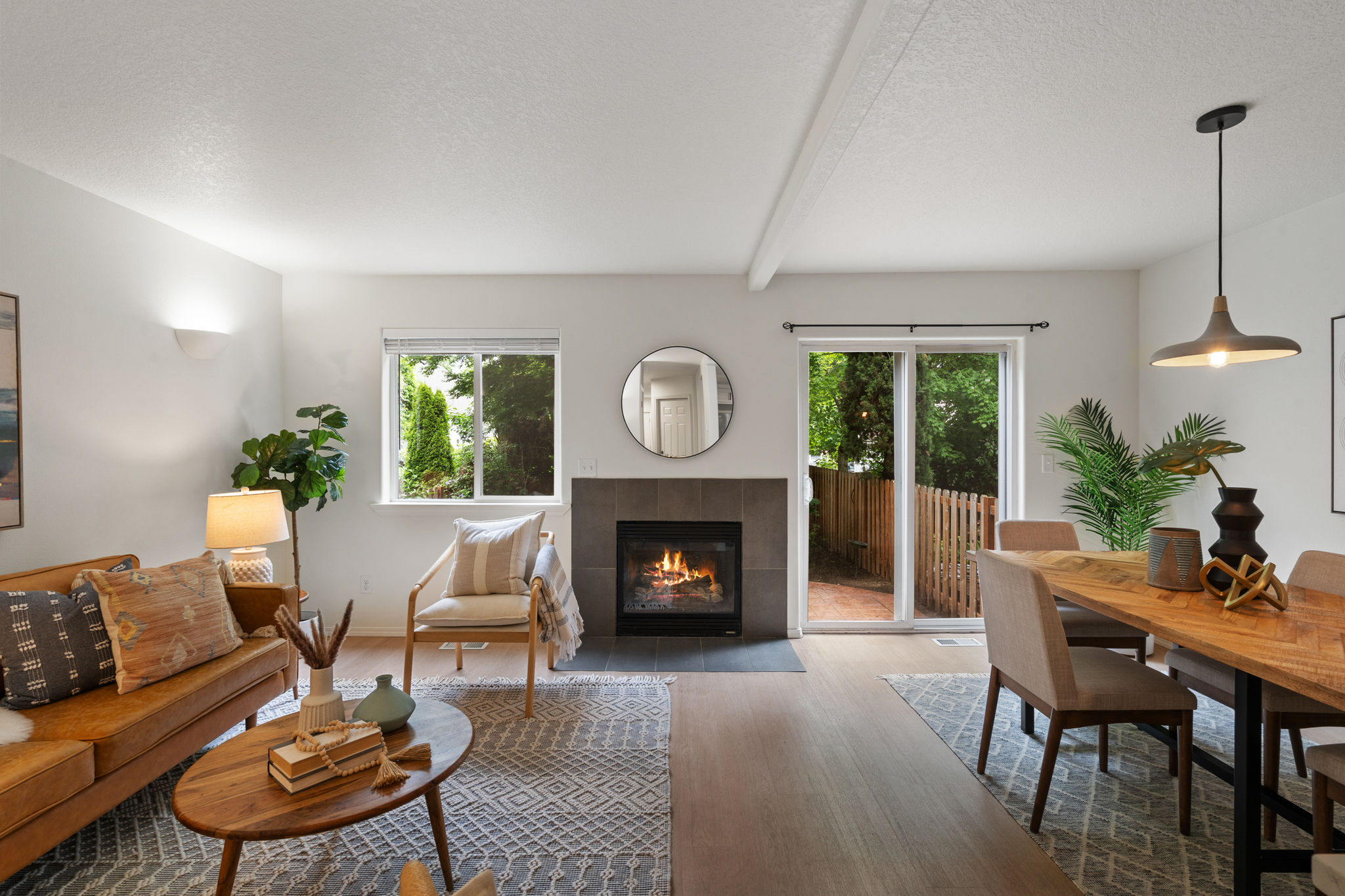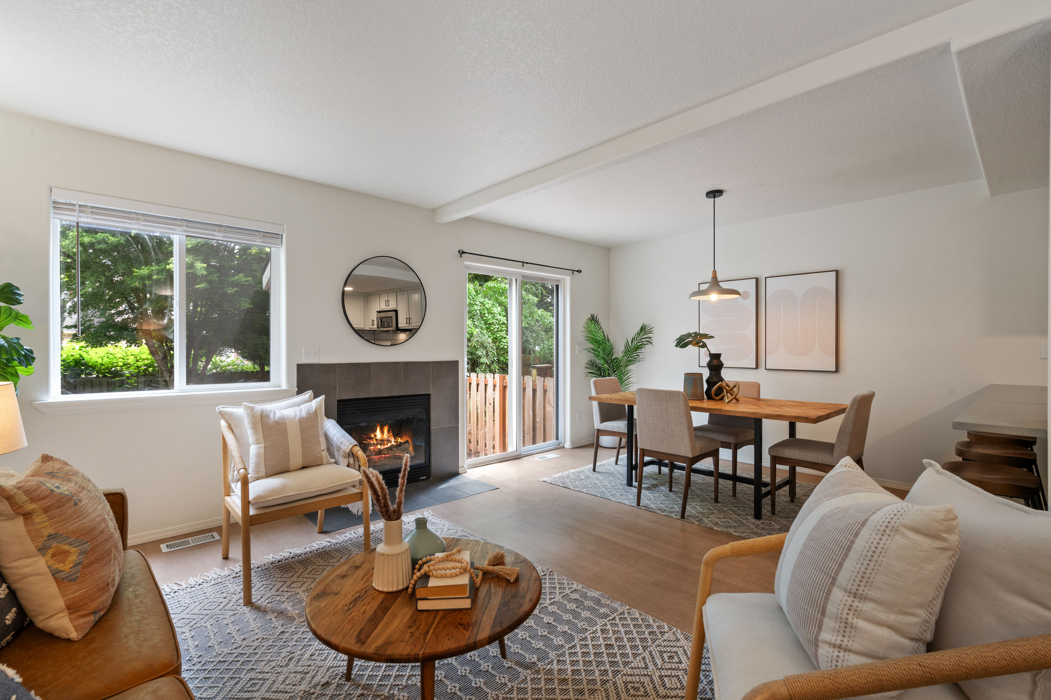 Nicely appointed home with open-concept living on the main floor and three bedrooms up. Modern kitchen has been styled with quartz, subway tile, fresh paint, newer appliances and a breakfast bar. Gracious living room features a cozy gas fireplace and opens to dining room. Primary bedroom is large with a lovely attached bathroom and an ample closet.