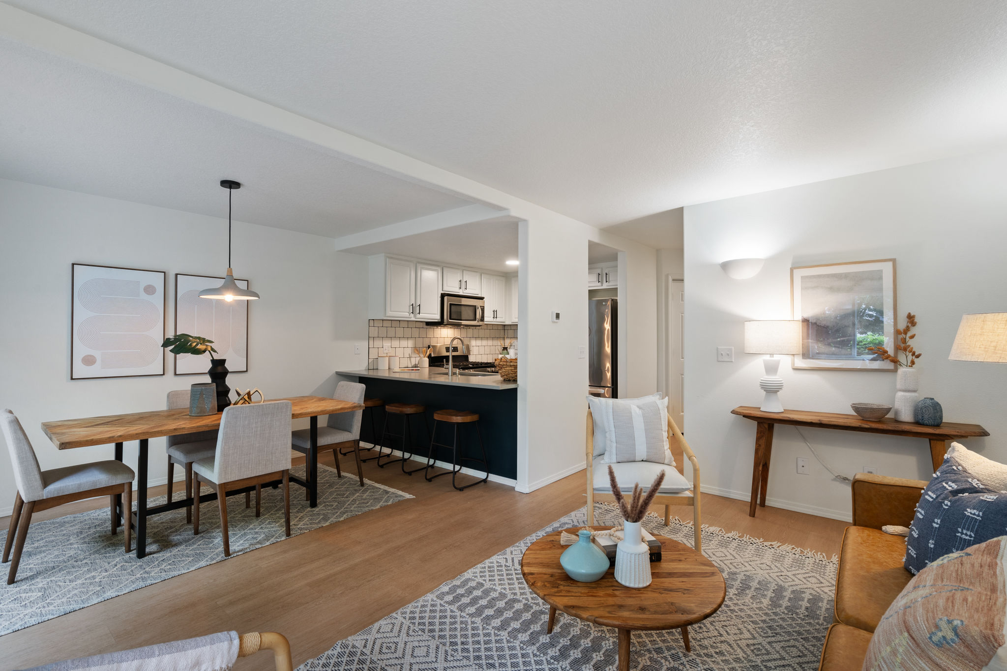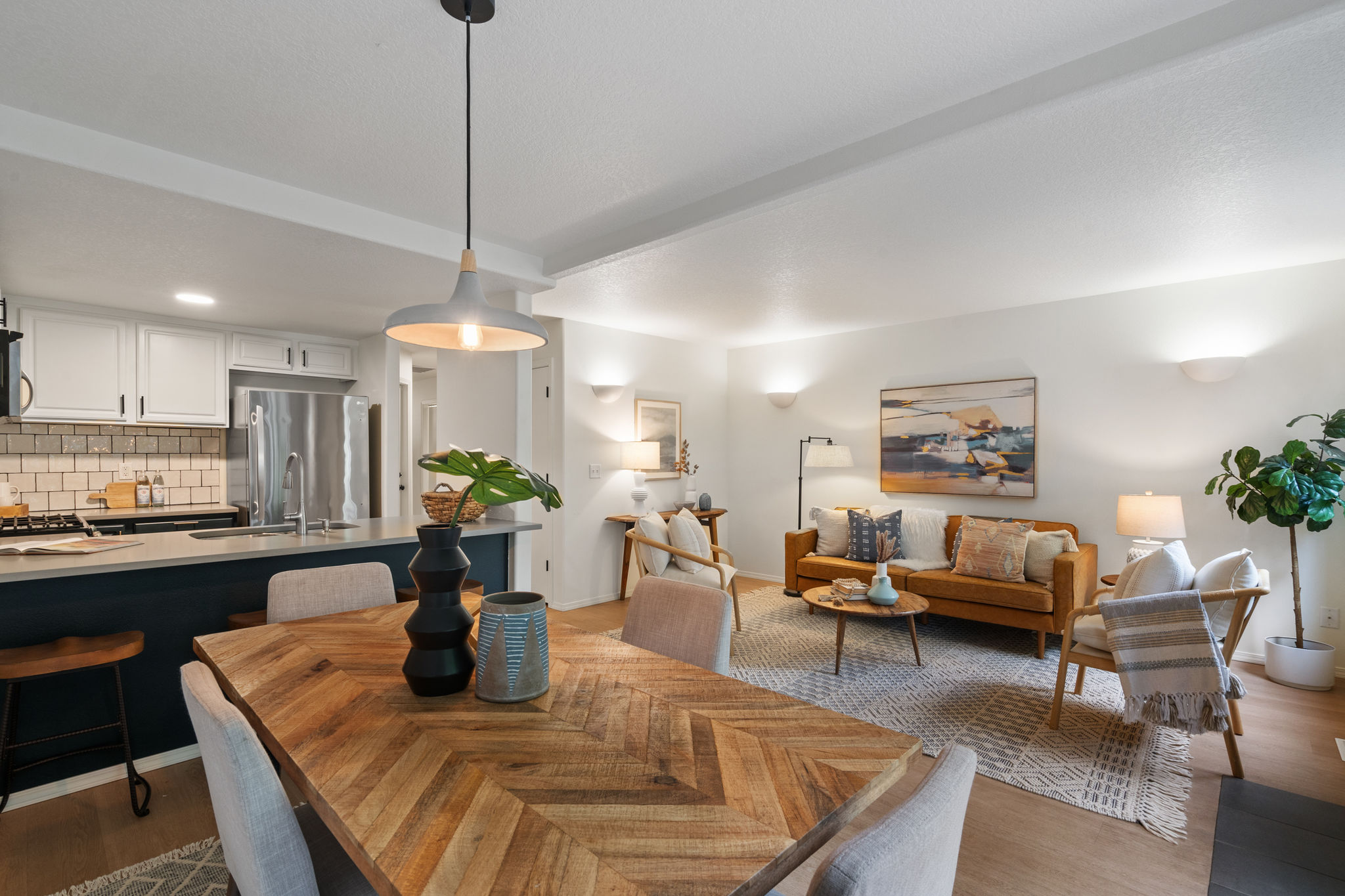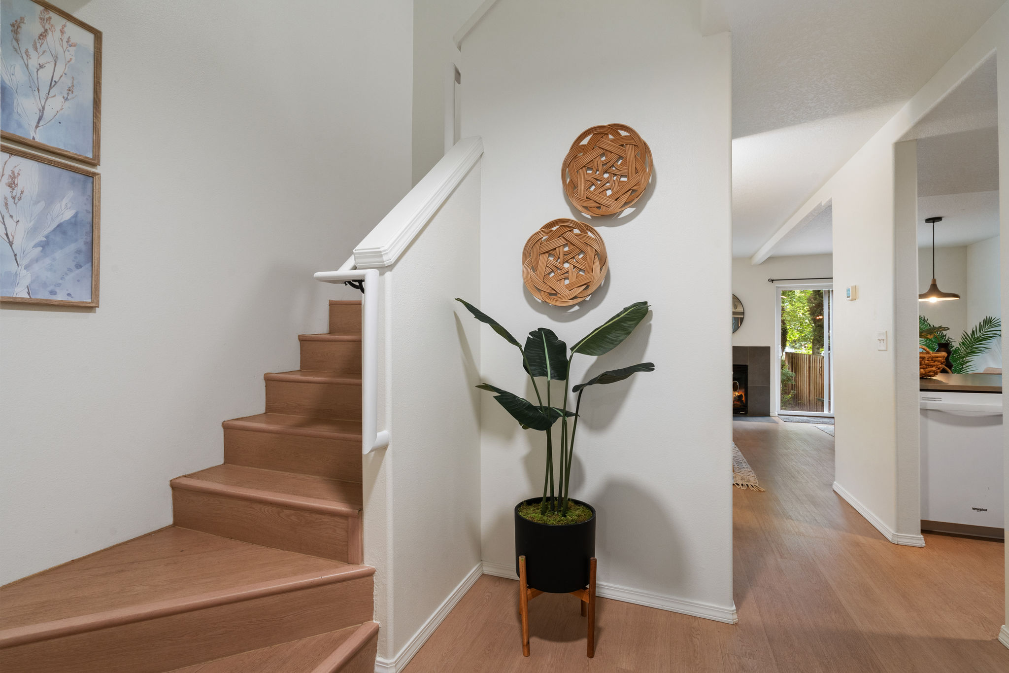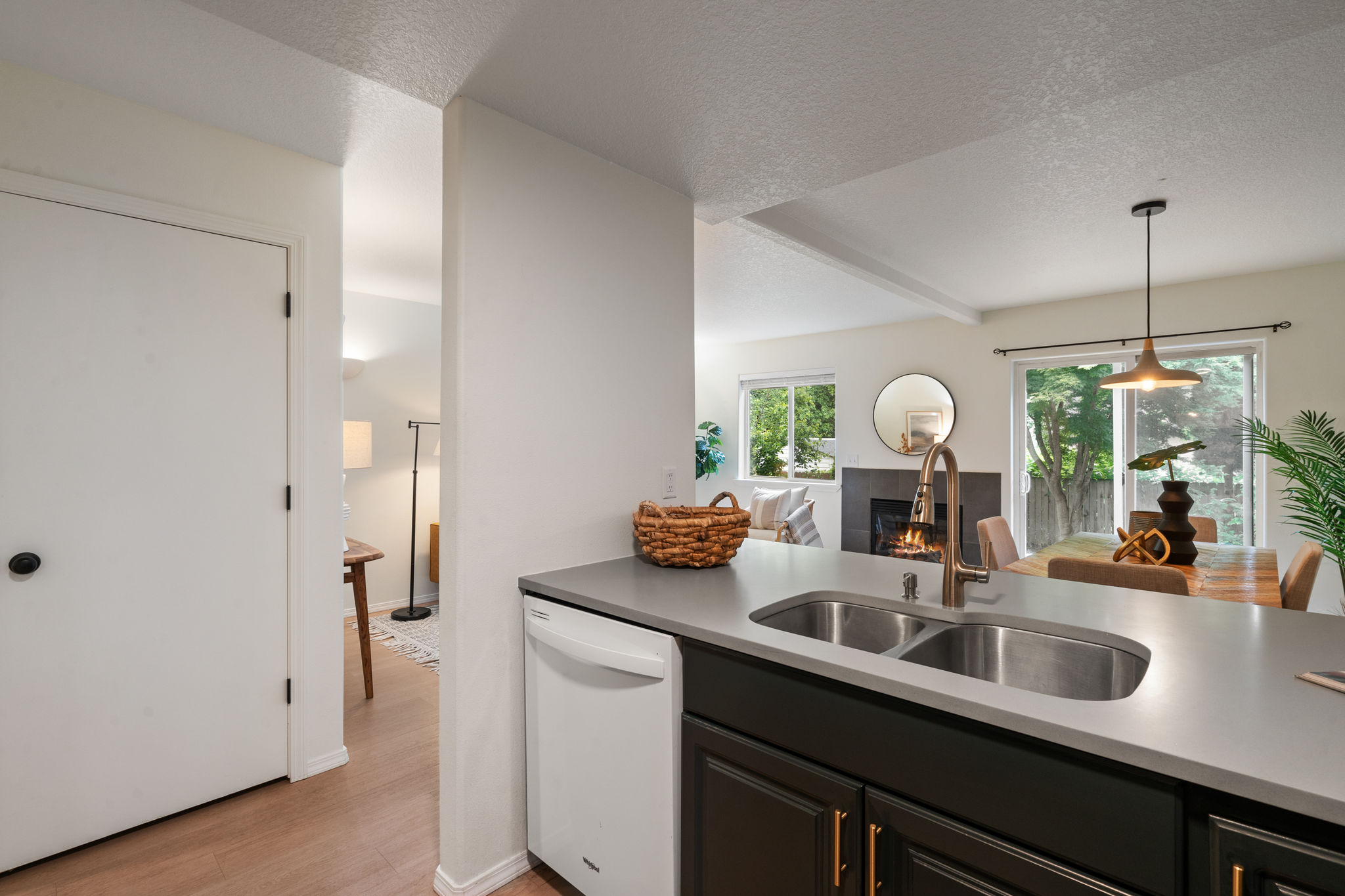 Nicely appointed home with open-concept living on the main floor and three bedrooms up. Modern kitchen has been styled with quartz, subway tile, fresh paint, newer appliances and a breakfast bar. Gracious living room features a cozy gas fireplace and opens to dining room. Primary bedroom is large with a lovely attached bathroom and an ample closet.