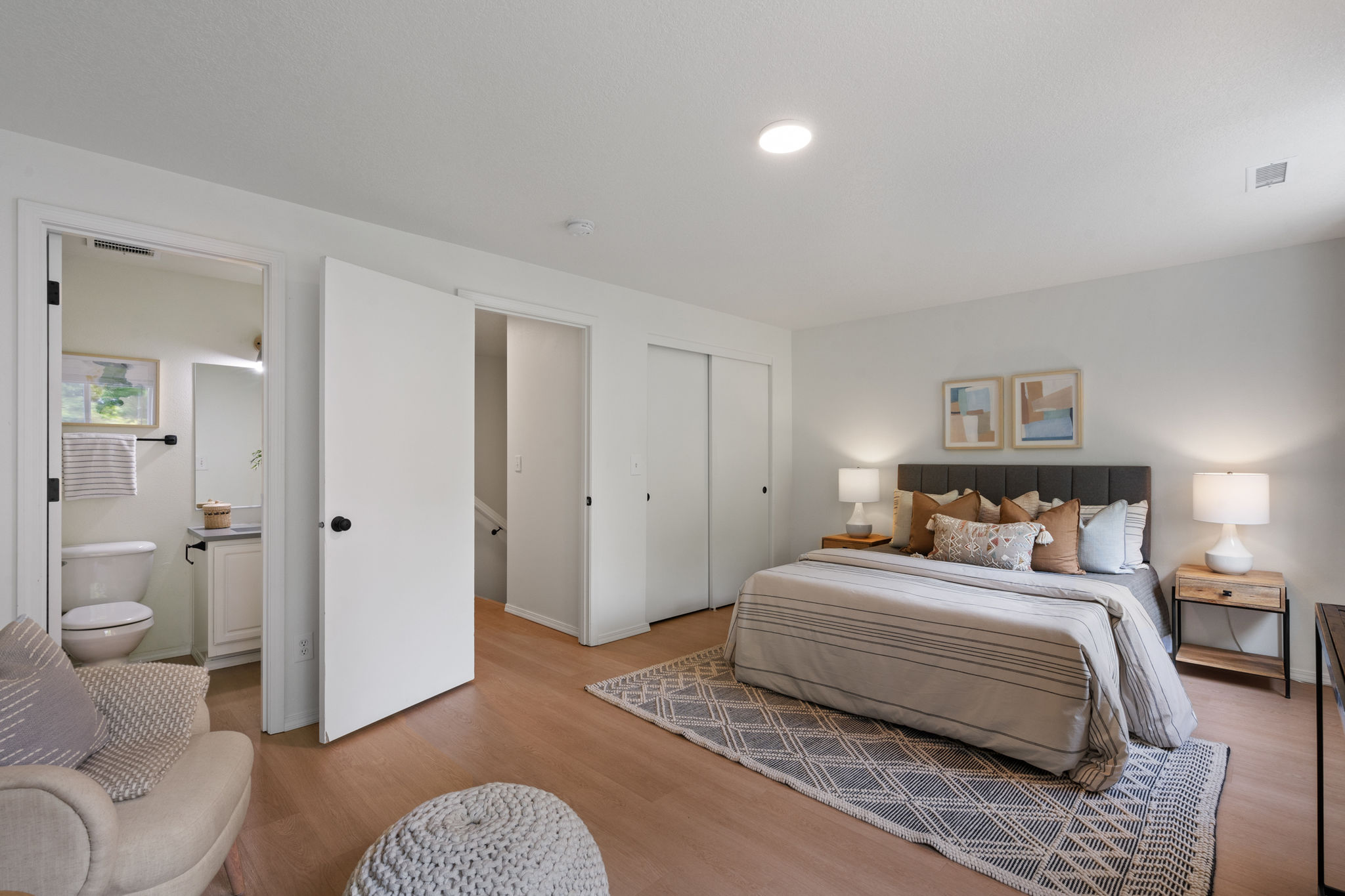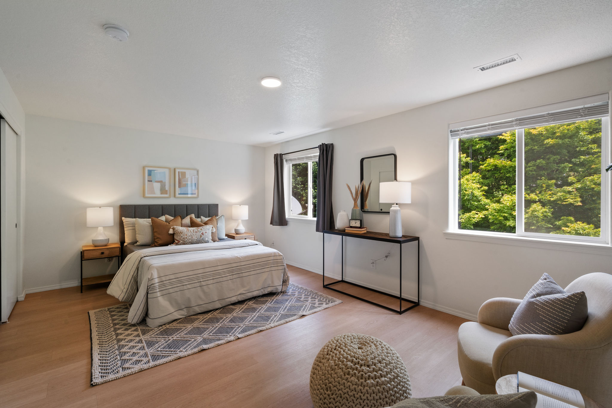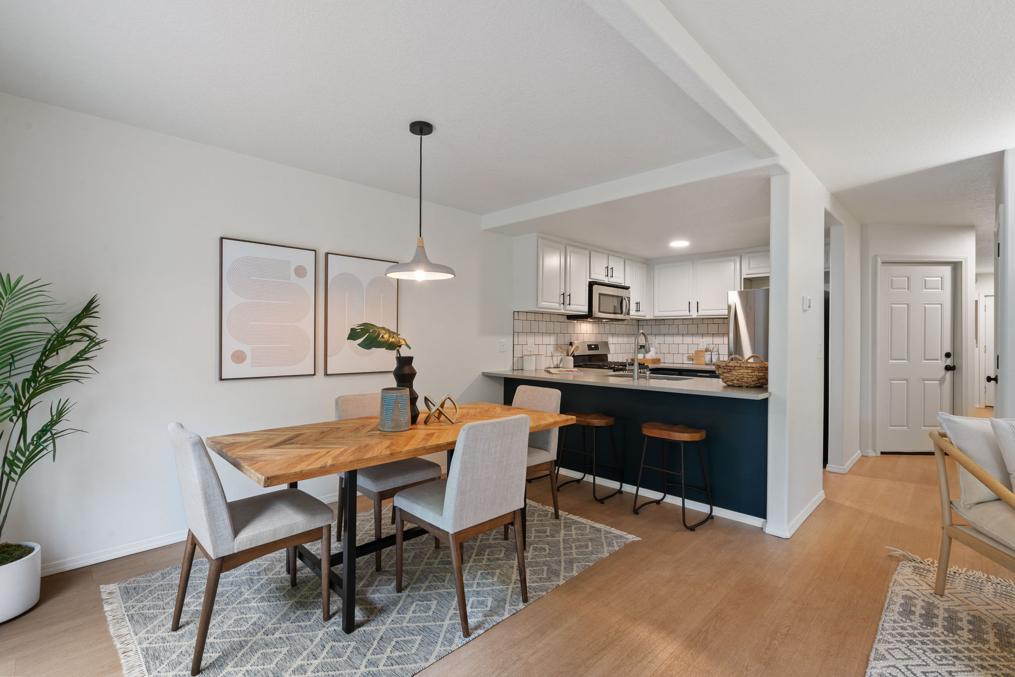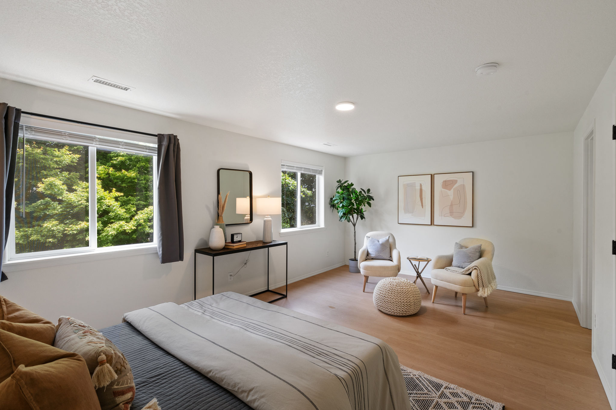 Nicely appointed home with open-concept living on the main floor and three bedrooms up. Modern kitchen has been styled with quartz, subway tile, fresh paint, newer appliances and a breakfast bar. Gracious living room features a cozy gas fireplace and opens to dining room. Primary bedroom is large with a lovely attached bathroom and an ample closet.