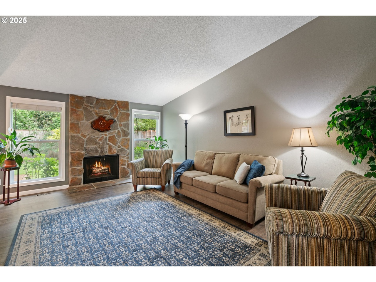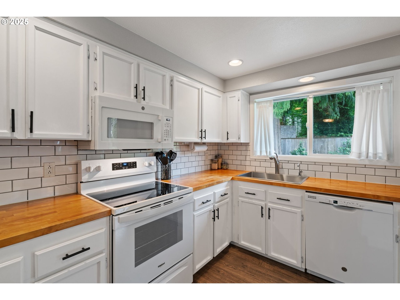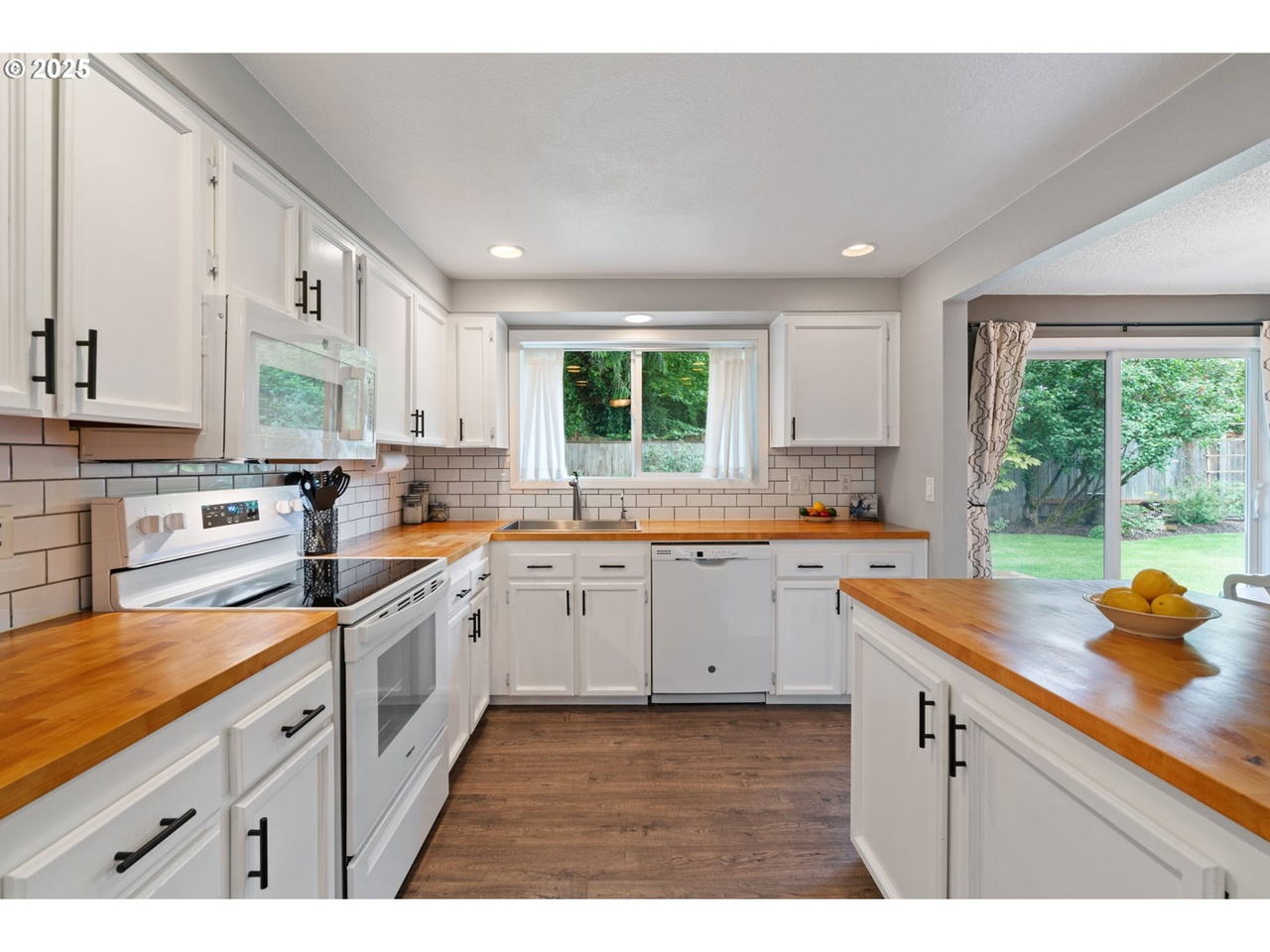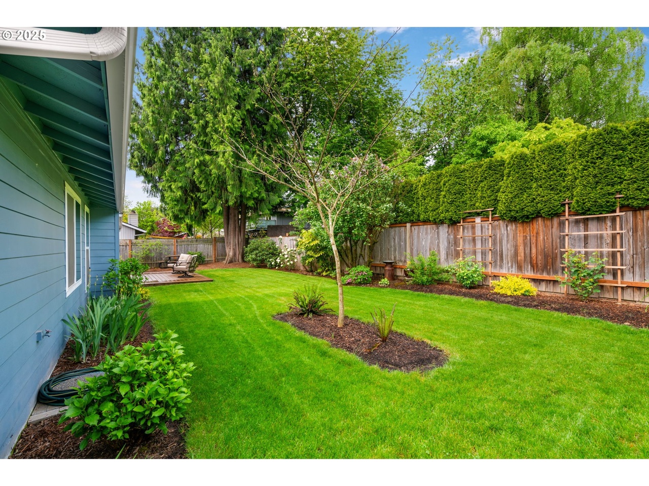 Move right into this adorable one-level home. Sweet and tidy updates combined with a thoughtful floor plan are perfect for all types of homeowner needs. Formal living room with a vaulted ceiling and fireplace; roomy and bright open kitchen and dining room with lush back yard views; Cozy family room with access to side patio and fireplace #2. Three bedrooms plus a bonus room with a loft which is perfect for for a home office, play area, or music room; 2 baths; 2-car attached garage and extra long parking on side of house; Spacious lot perfect for gardening, entertaining, outdoor recreation, or casual al fresco dinners. About a mile to fun downtown Tigard, less than a mile to Fanno Creek and Bonita Parks. H-Mart and Trader Joes are both about 1.5 miles away. Easy access to I5 and Hwy 99 for good proximity to Lake Oswego, SW PDX, Bridgeport, and more! 2021 new roof & gutters, 2022 new water heater & gutter guards. 2023 new washer/dryer and microwave. 2024 new stove. Great proximity to the public library and neighborhood schools!