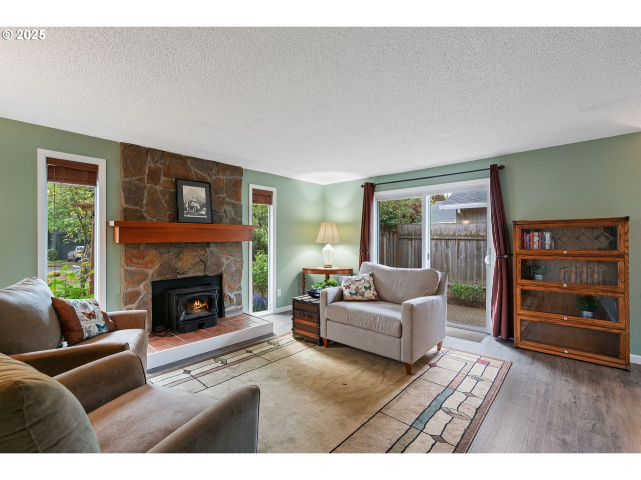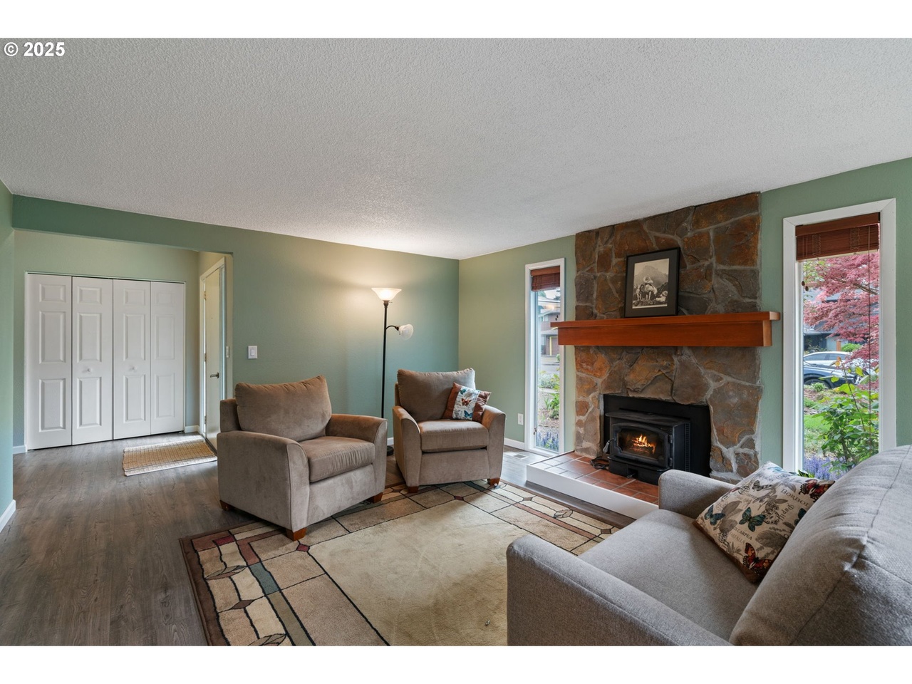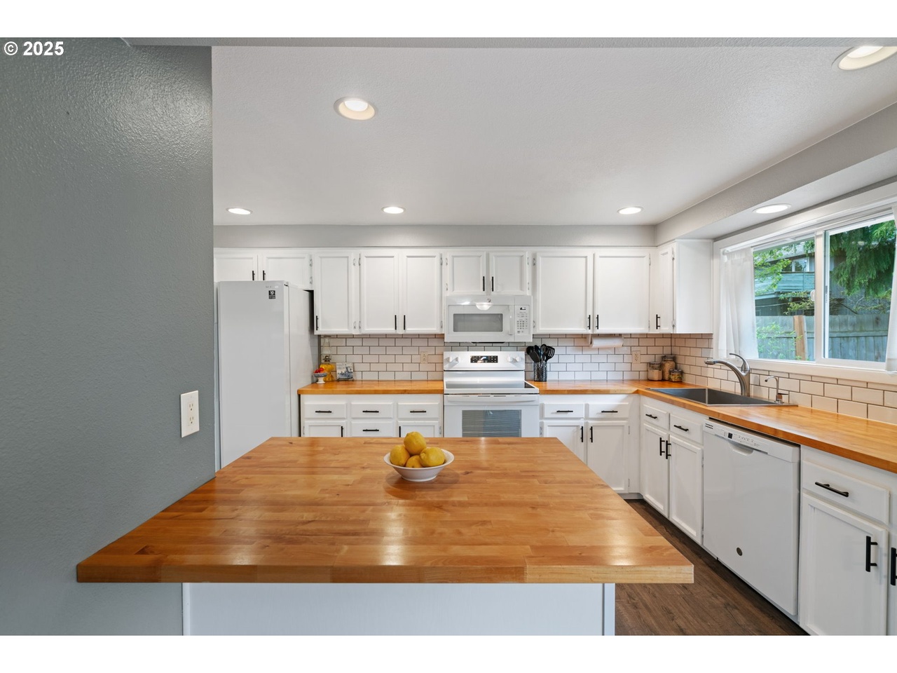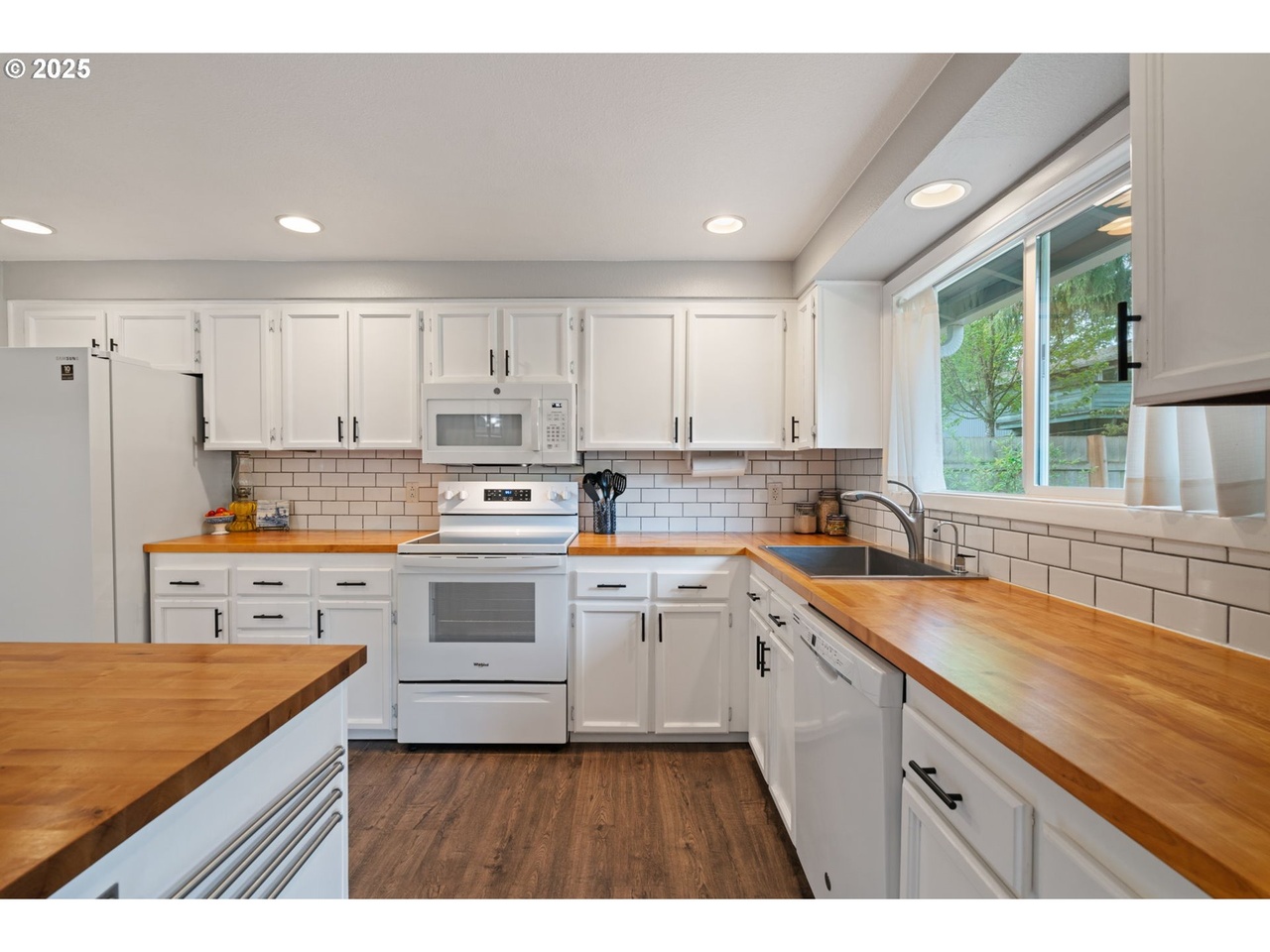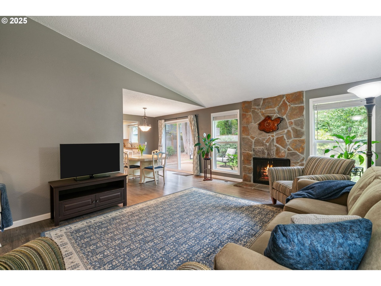 Move right into this adorable one-level home. Sweet and tidy updates combined with a thoughtful floor plan are perfect for all types of homeowner needs. Formal living room with a vaulted ceiling and fireplace; roomy and bright open kitchen and dining room with lush back yard views; Cozy family room with access to side patio and fireplace #2. Three bedrooms plus a bonus room with a loft which is perfect for for a home office, play area, or music room; 2 baths; 2-car attached garage and extra long parking on side of house; Spacious lot perfect for gardening, entertaining, outdoor recreation, or casual al fresco dinners. About a mile to fun downtown Tigard, less than a mile to Fanno Creek and Bonita Parks. H-Mart and Trader Joes are both about 1.5 miles away. Easy access to I5 and Hwy 99 for good proximity to Lake Oswego, SW PDX, Bridgeport, and more! 2021 new roof & gutters, 2022 new water heater & gutter guards. 2023 new washer/dryer and microwave. 2024 new stove. Great proximity to the public library and neighborhood schools!