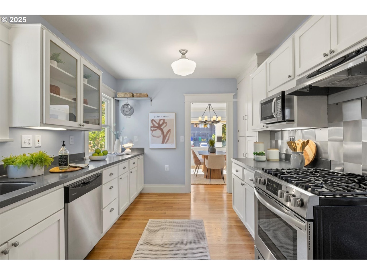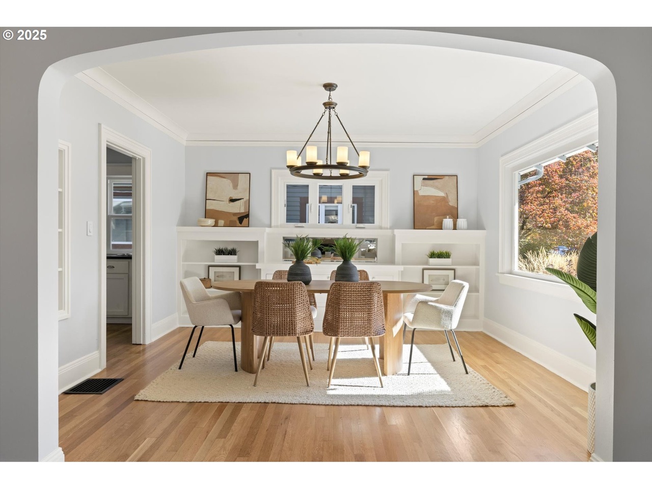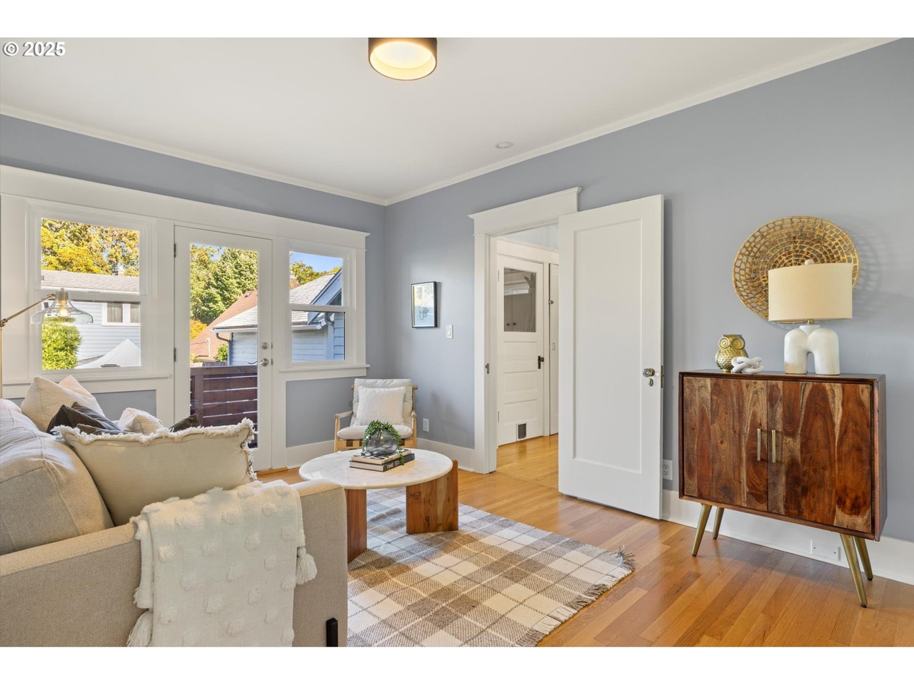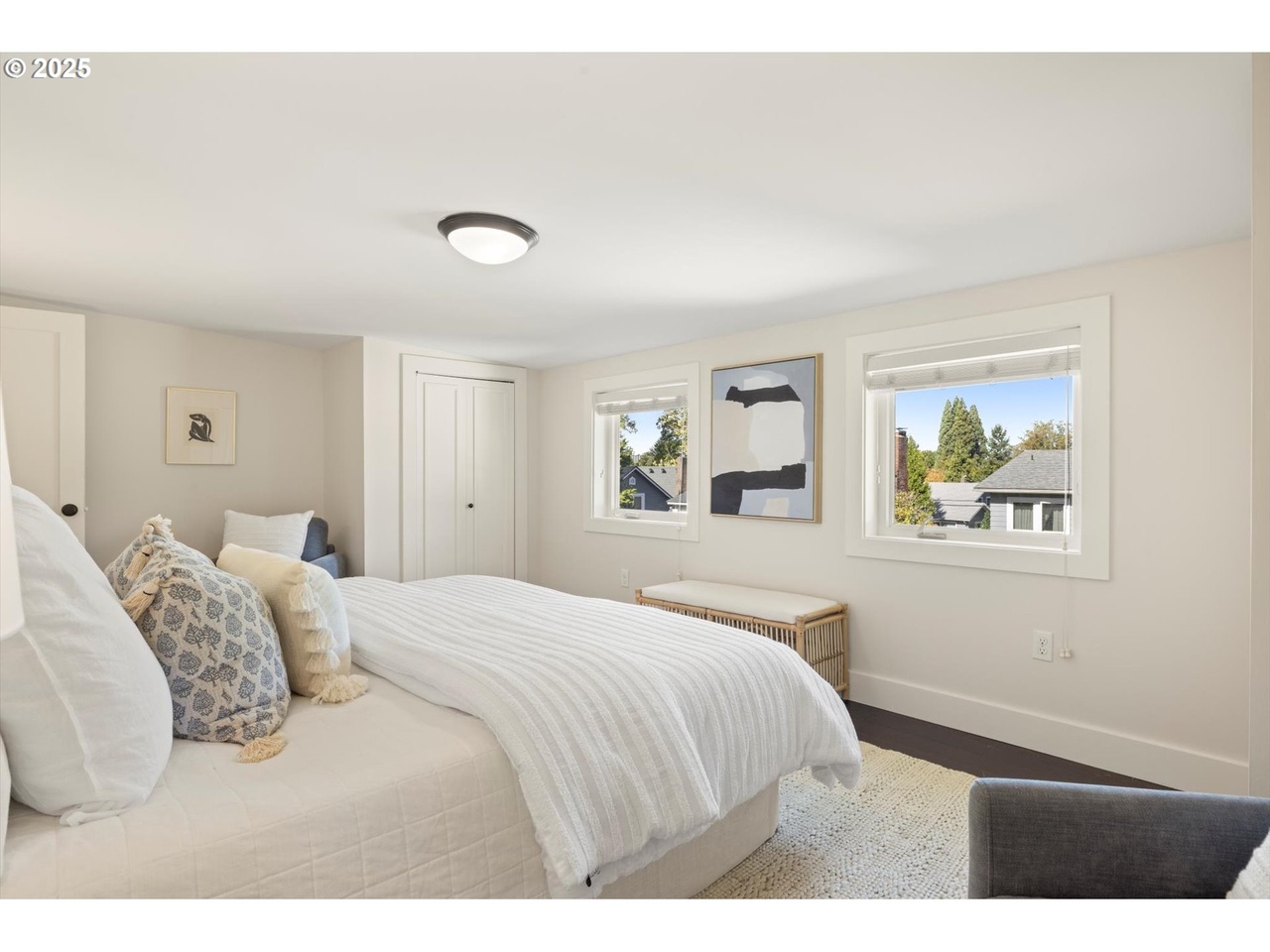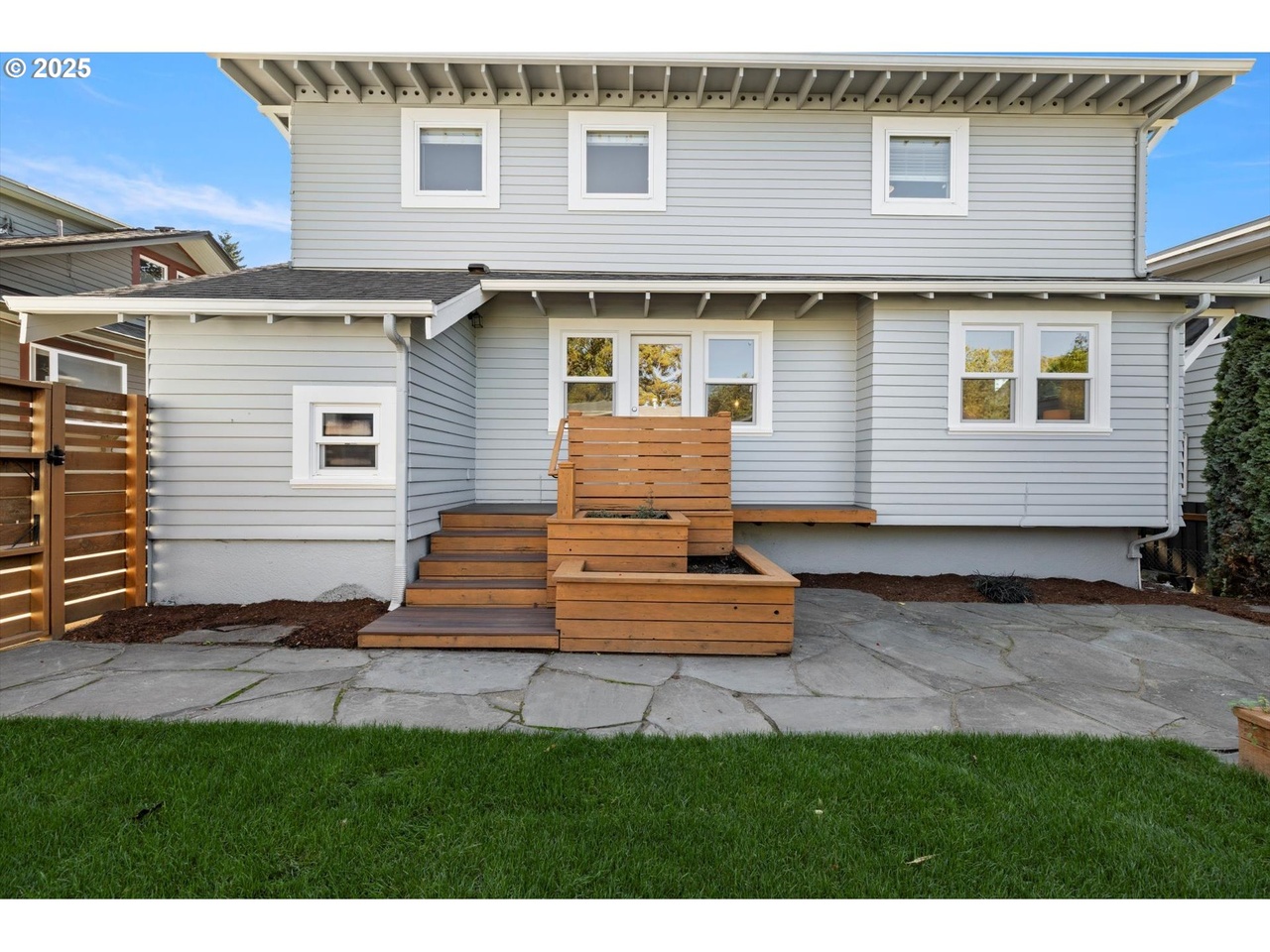 Classic Laurelhurst Bungalow with timeless character and thoughtful updates. Perched above the street with an inviting front porch, this charming home welcomes you with refinished hardwood floors, new interior and exterior paint, and all-new windows. Inside, a formal living room with a large picture windows and a stately fireplace seamlessly connects to a light-filled dining room with historic built-ins. A sweet and functional galley kitchen leads to a versatile bonus room which is perfect for a media room, den, or office. A primary bedroom with double closets and a bathroom round out the main floor. Upstairs, you’ll find a second primary bedroom option, a third bedroom, and another full bath. A partial, unfinished basement with seismic bolting and laundry provides ample opportunity for future renovations, allowing you to customize this home to your exact specifications. The fenced back yard features a private patio, raised beds, a green lawn and a detached shed – ideal for an artist's studio, home office, or potential ADU. A functional one-car garage completes the package. Location can’t be beat! Set on one of Laurelhurst’s most beloved streets and just four blocks to NE 28th Avenue’s vibrant restaurants, cafés, and shops, the Laurelhurst Theater, Whole Foods, and the incomparable Laurelhurst Park. Easy commute to downtown via bike, bus or auto! Walk Score = 89. Bike Score = 92. Beloved Schools: Laurelhurst for K-8 and and newly renovated Grant High School. [Home Energy Score = 1. HES Report at https://rpt.greenbuildingregistry.com/hes/OR10242184]